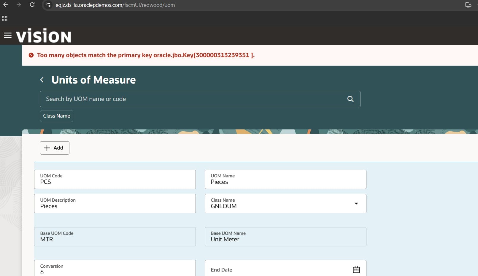 I am triying to create new Unit of Measurement but getting the following error
