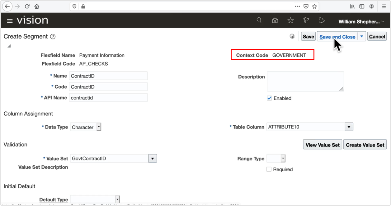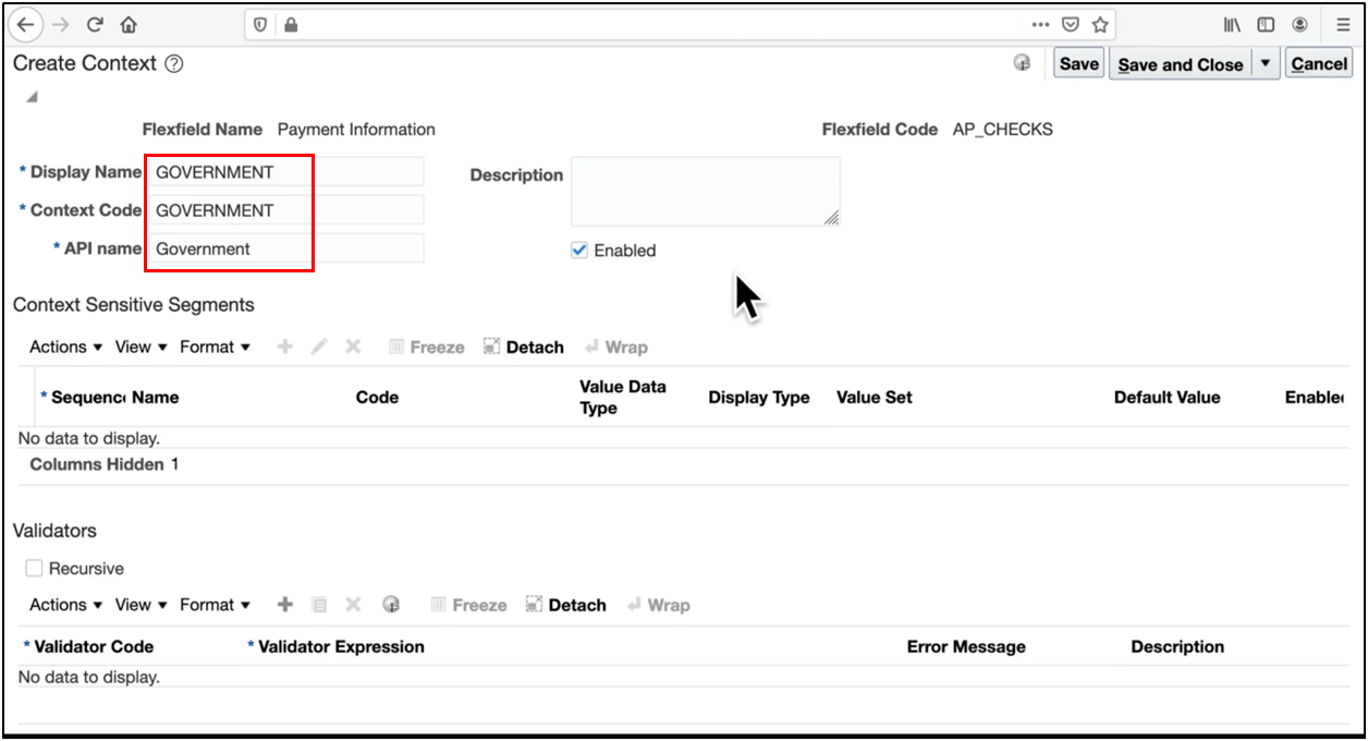 Save and deploy the DFF Oracle Fusion global segment to become active in Oracle Cloud Payables.