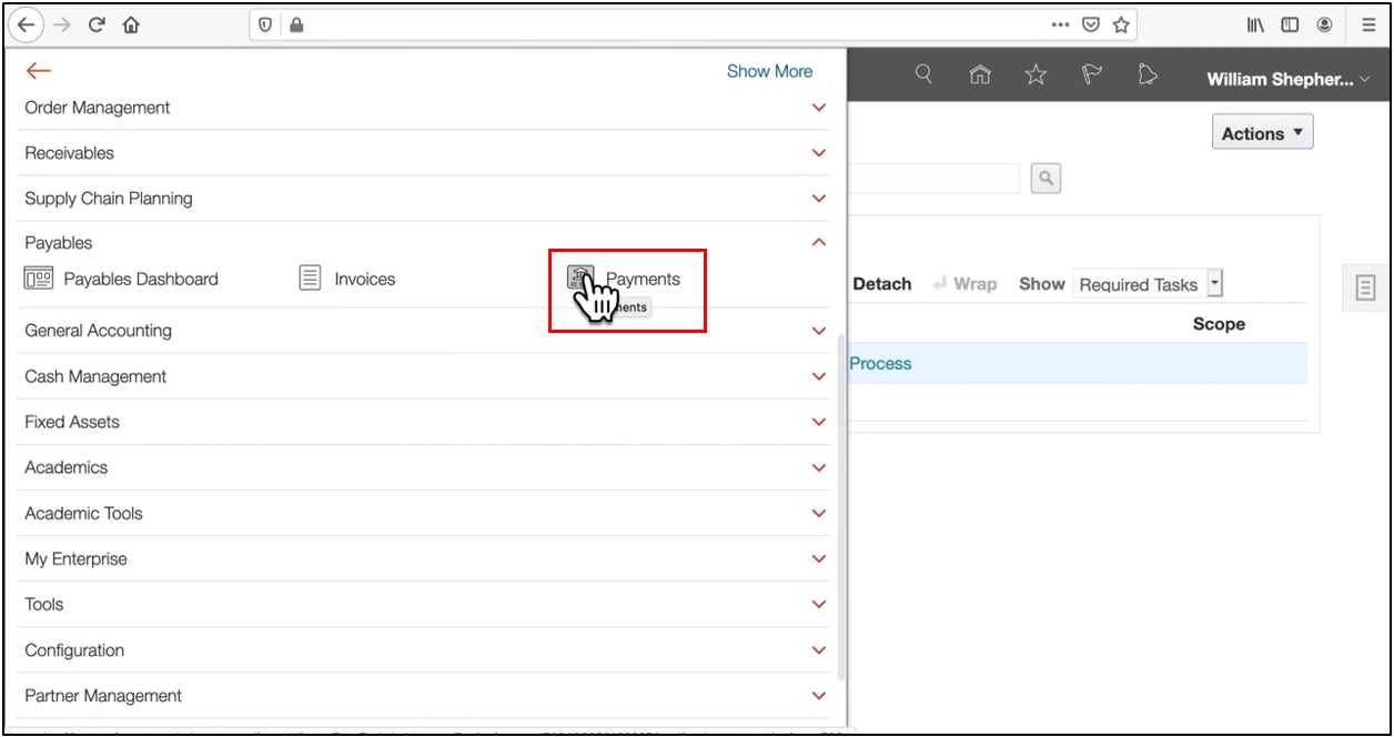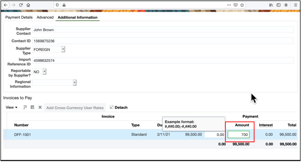 1. Navigate to Payments → Create Payment in Oracle Fusion Financials.