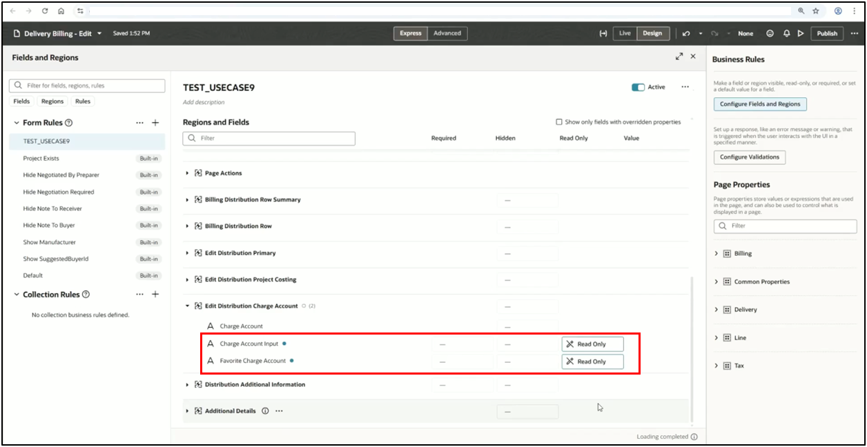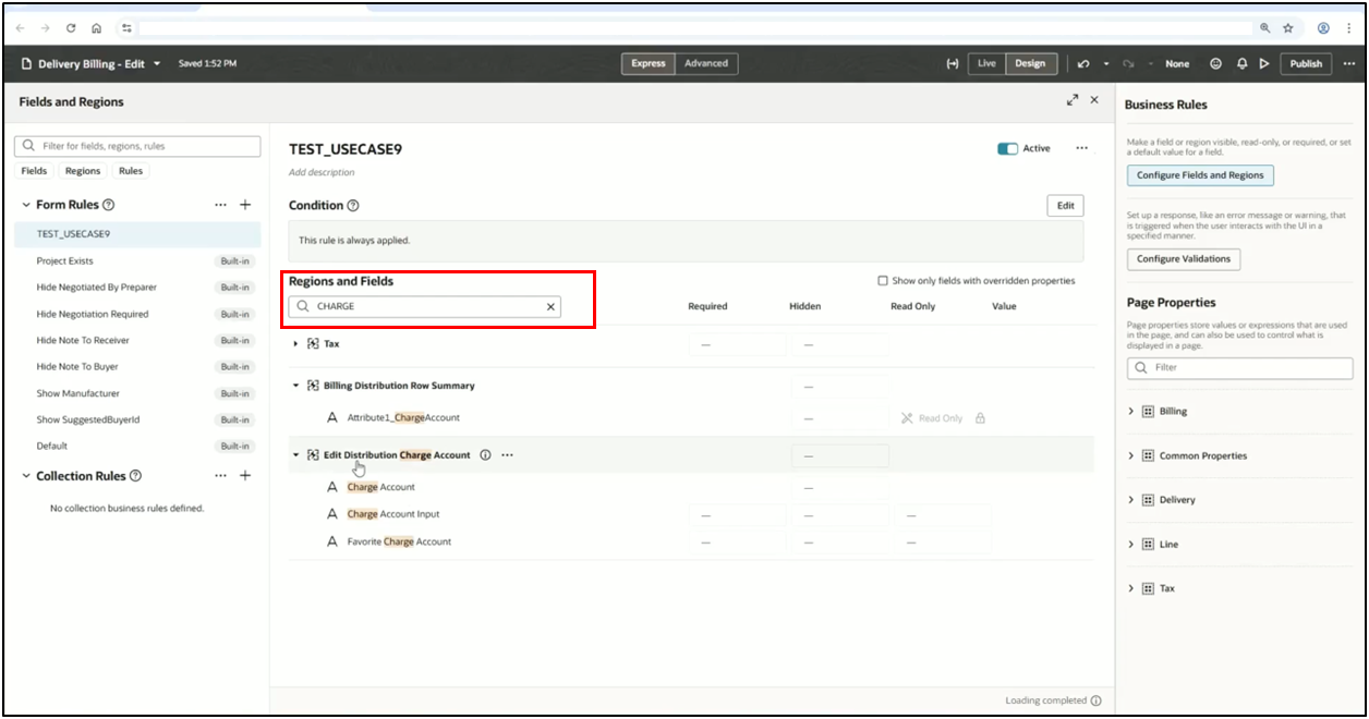 1. In the Rule Editor, search for “Predefined Charge Account” and identify the associated fields.